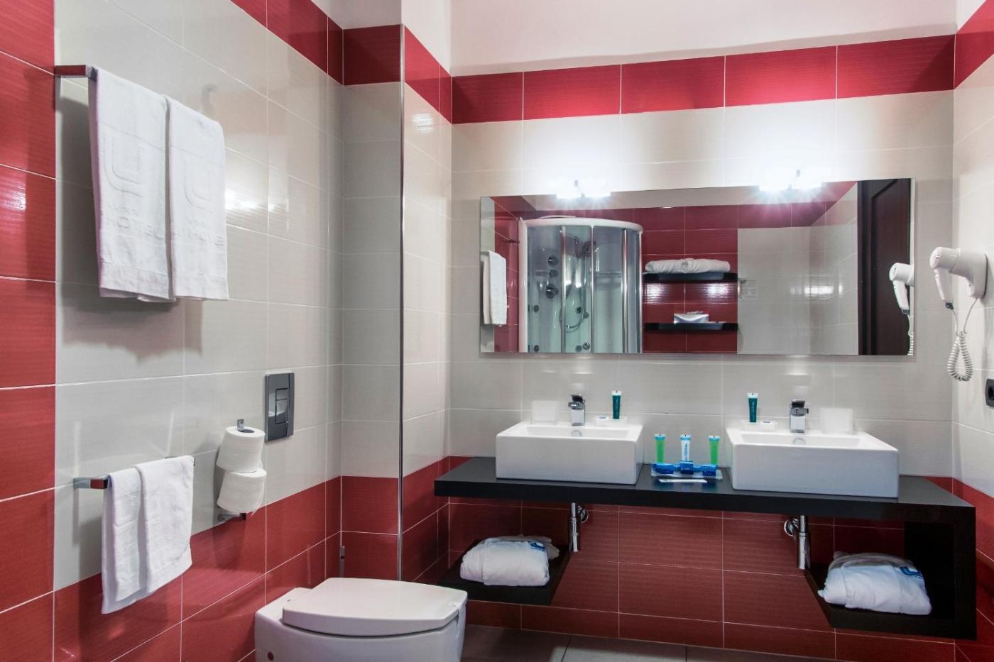 Camera Deluxe MatrimonialeDoppia con Letti Singoli con Balcone. Spaziosa e moderna camera climatizzata con balcone alla francese, WiFi gratuito e TV LED satellitare da 26 pollici. Il bagno privato è provvisto di asciugacapelli edi cortesia. Al momento della prenotazione siete pregati di specificare la tipologia di letti desiderata. ;