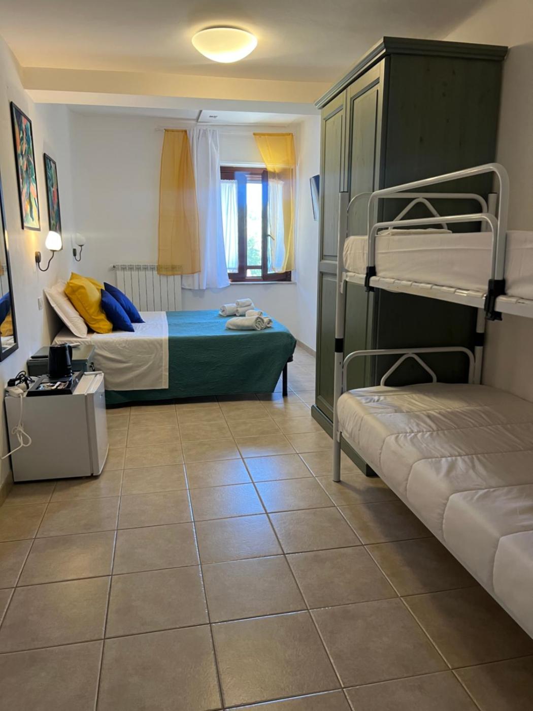 Camera Quadrupla con Vista Giardino. Guests will have a special experience as the quadruple room offers a pool with a view. Providing free toiletries and bathrobes, this quadruple room includes a private bathroom with a shower, a bidet and a hairdryer. The air-conditioned quadruple room provides a flat-screen TV with satellite channels, soundproof walls, a minibar, a tea and coffee maker as well as garden views. The unit offers 2 beds. ;