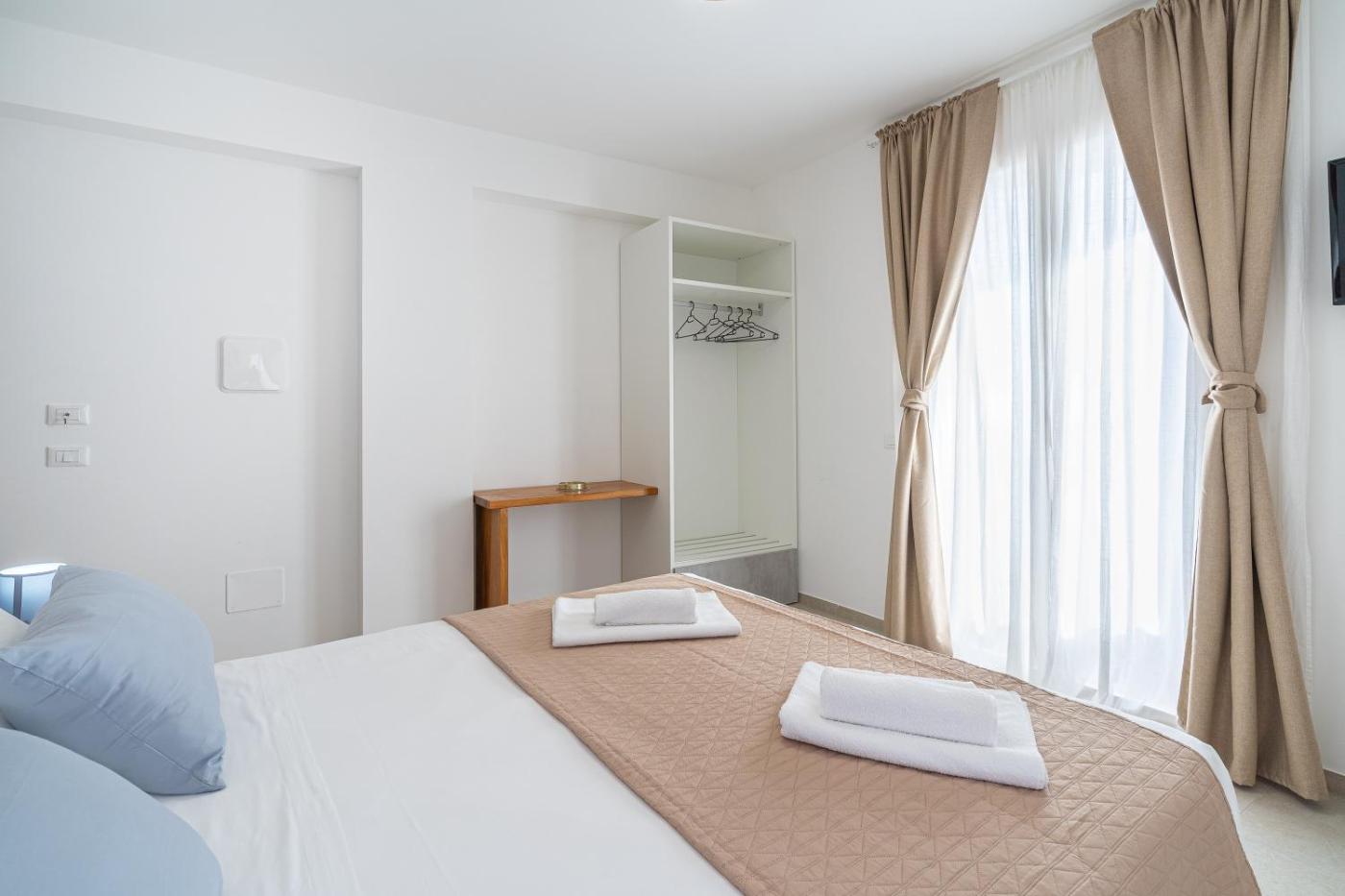 Camera Queen Standard. Camera matrimoniale dotata di aria condizionata, bagno privato, balcone affacciato sul mare e TV con canali via cavo. L’alloggio presenta 1 letto. ;
