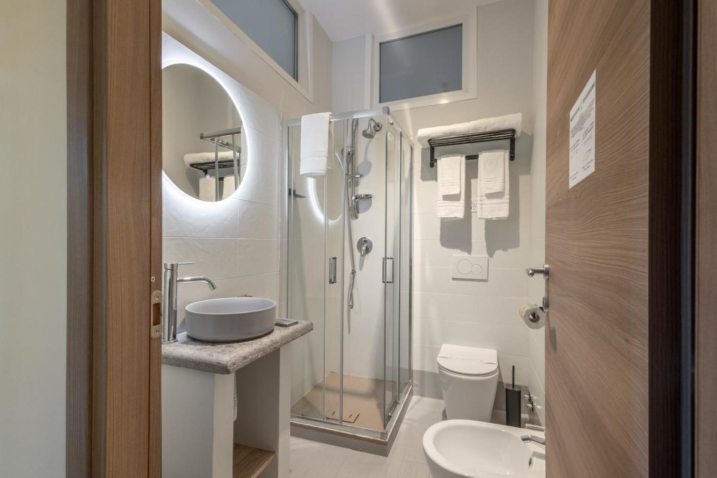 Ampia Camera MatrimonialeDoppia con Letti Singoli. The spacious twindouble room offers air conditioning, a minibar, as well as a private bathroom boasting a shower and a bidet. This twindouble room has a tea and coffee maker, flat-screen TV, city views, as well as winechampagne for guests. ;